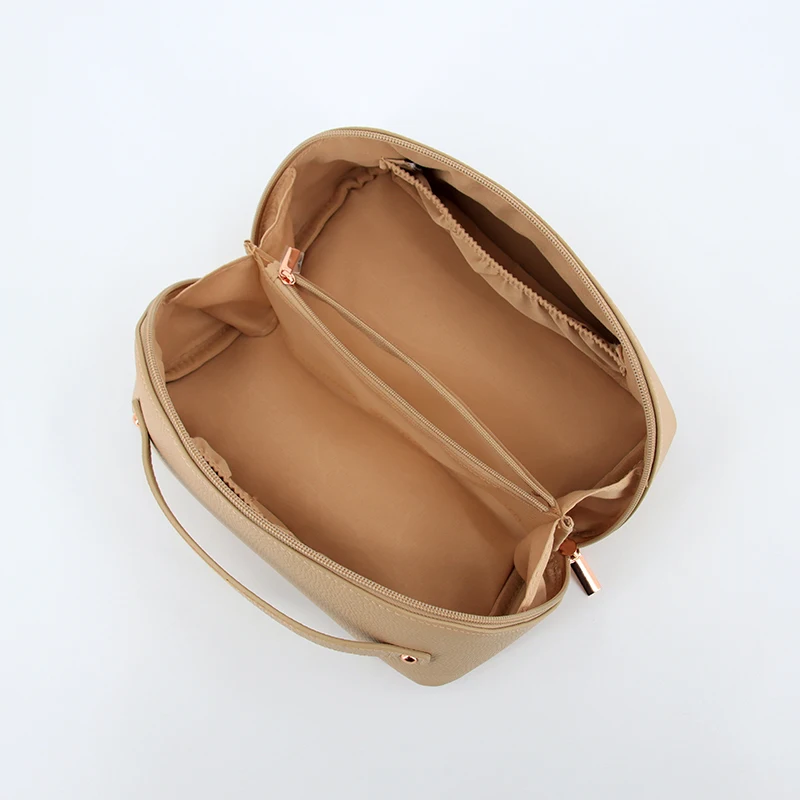En av de fremtredende egenskapene ved denne kosmetikkposen er håndtakdesignet, som gjør den enkel å ta med seg uansett hvor du går. Enten du reiser eller bare drar ut for dagen, er denne sminkesaken den ideelle reisevennen. Håndtaket er sterkt og solid, så du kan stole på at dine skjønnhetsprodukter er trygge og sikkert oppbevart inne i posen.
