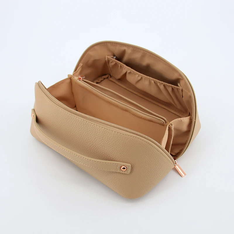 Laget av høykvalitetsmaterialer fra BSCI-fabrikk som er godkjent, er denne kosmetikkposen slitesterk og holdbar. Litchi-mønsteret i PU gir posen et luksuriøst utseende og følelse, noe som gjør den til et perfekt tilskudd til din skjønnhetskolleksjon. Materialet er også enkelt å rengjøre, slik at du kan holde posen som ny i mange år framover.