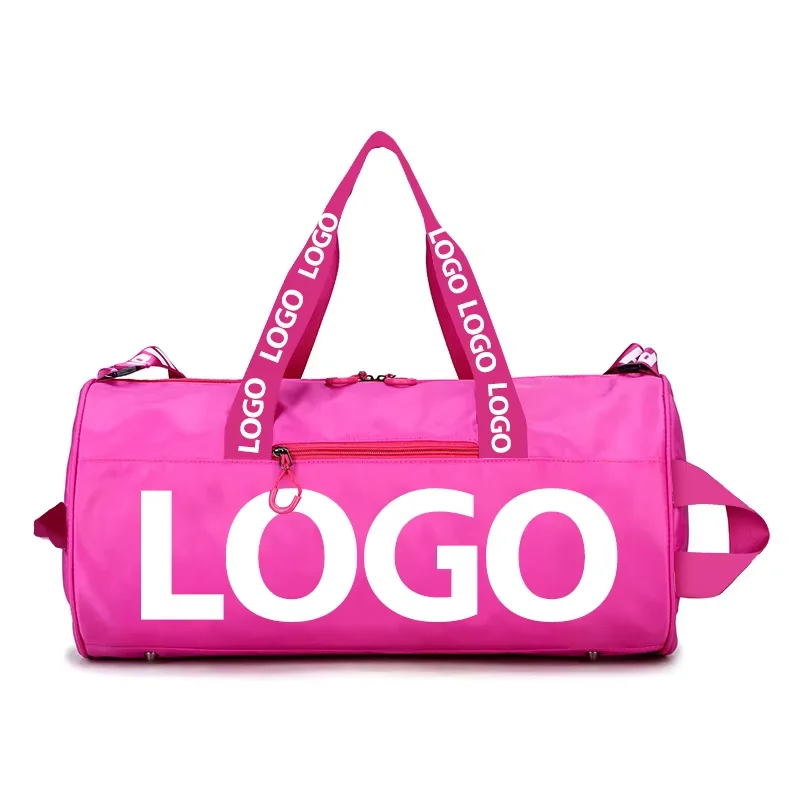 Tilpasset luksusreisebagasje, sportsveske, bærbar tote-, skulder-, yoga- og treningsveske med separat fuktig/tørr-inndeling, rosa duffelbag med logo |