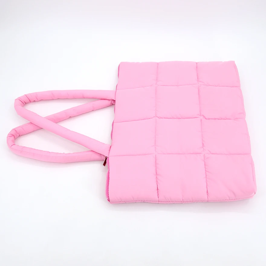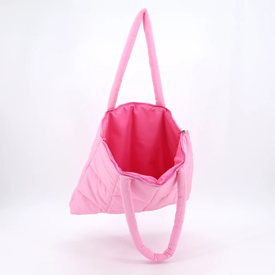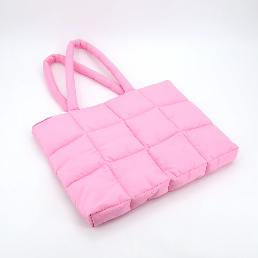 Fabrikk-grosist moden tilpassede lette myke dempede putekveidede pufsete totevesker skulderveske nylon puffer håndveske |