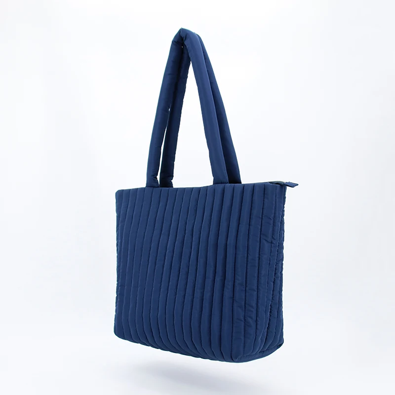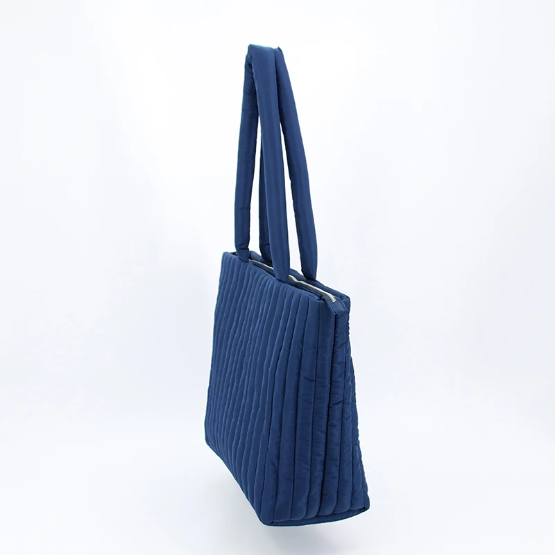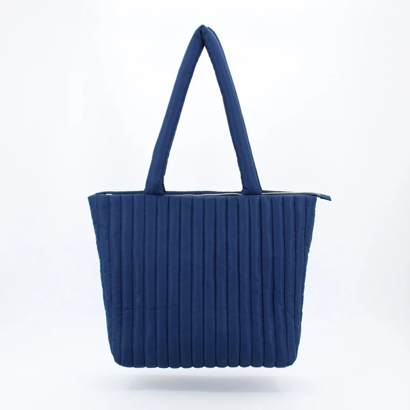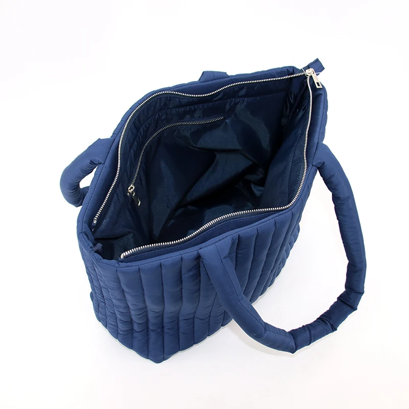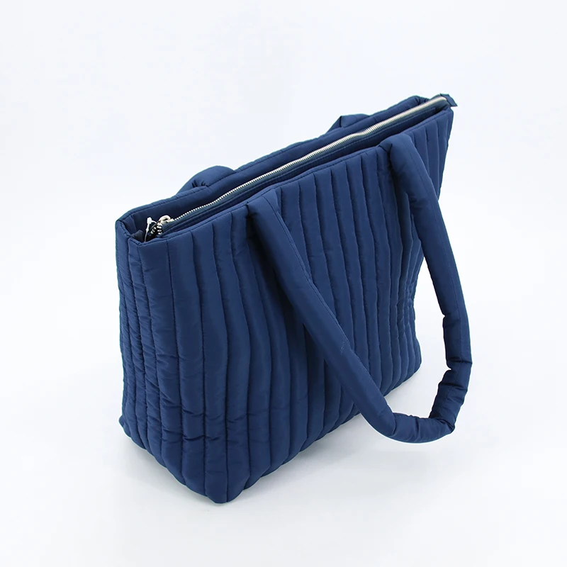 Stor kapasitet toteveske med lommer og glidelås nylonkveidet pufset veske tilpasset dempet stil handlevasker over skulder |