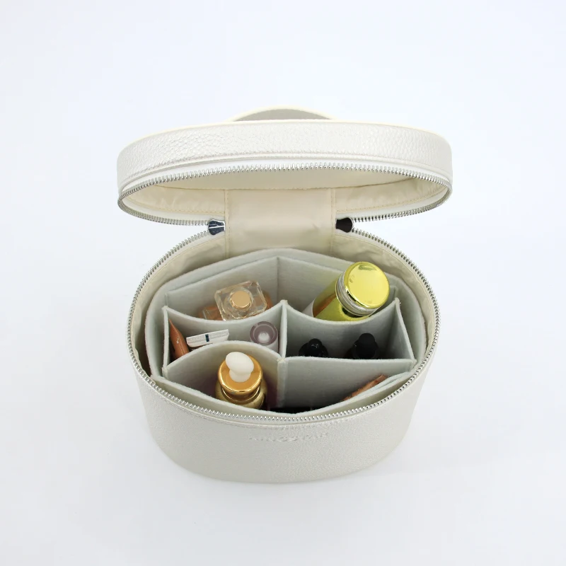 Laget av høykvalitets rosa lær, stråler denne sminkesaken av luksus og eleganse. Det myke og slitesterke materialet sørger for at sminken din er beskyttet og trygt oppbevart, mens den elegante designen tilfører en elegant detalj i din skjønnhetsrutine. Den store størrelsen på sekken gjør at du kan oppbevare et bredt utvalg produkter, fra grunnmaske og øyenskyggepaletter til pensler og lepestift, noe som gjør den til det ideelle valget for reiser eller daglig bruk.