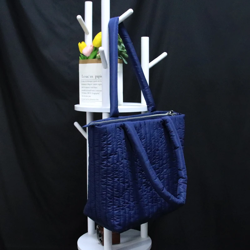 Introduksjon av den nye kolleksjonen med nylonkveidete pufsete totebagger fra KINGSTAR! Denne stilige og trendy totebagen er en must-have-tilbehør for alle som er glade i mote. Laget av høykvalitets nylonmateriale er denne totebagen perfekt for daglig bruk, enten du skal handle, gjøre ærend eller ta deg en avslappet dag utenfor.
