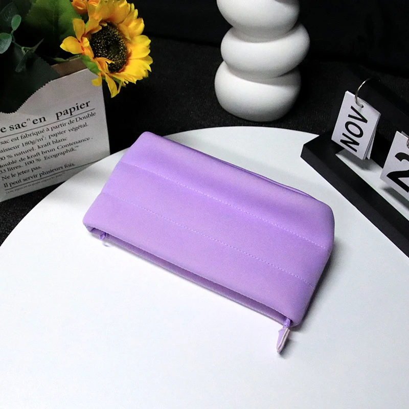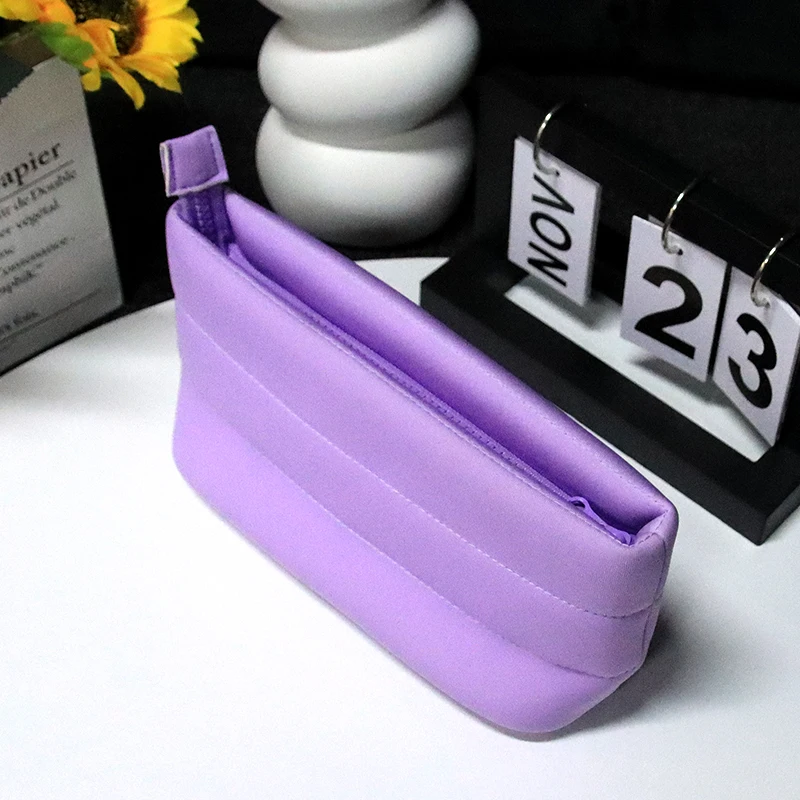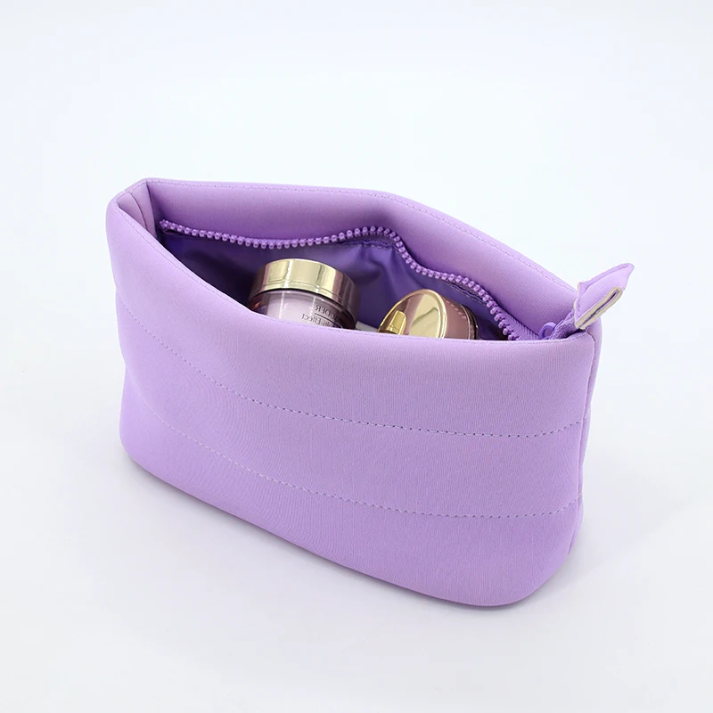 Ny puffer quiltet mode hudpleie OEM fabrikk tilpasset kosmetikkpose sminkpose neopren puffebubble pose med glidelås |