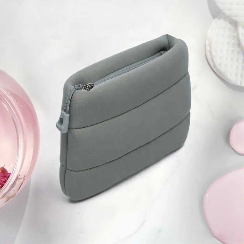 Med sin kompakte størrelse og lette design er denne neoprenposen ideell for reising, daglig bruk eller enkelt for å holde kosmetikken din organisert. Vannavvisende og enkel å rengjøre neoprenmateriale gjør den til et flott alternativ for oppbevaring av sminkemidler, hudpleieprodukter eller til og med små elektroniske enheter.