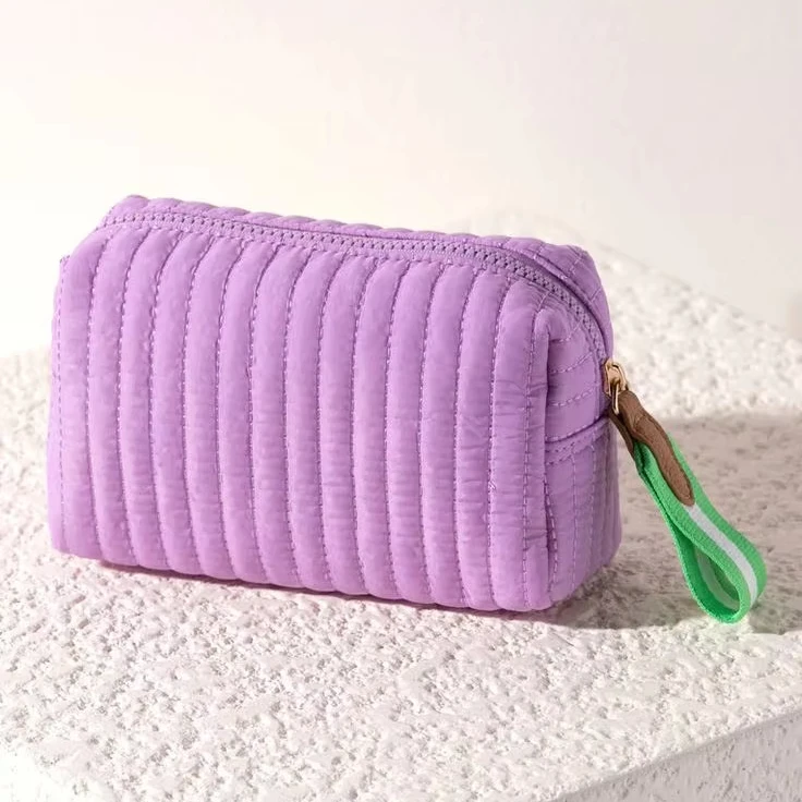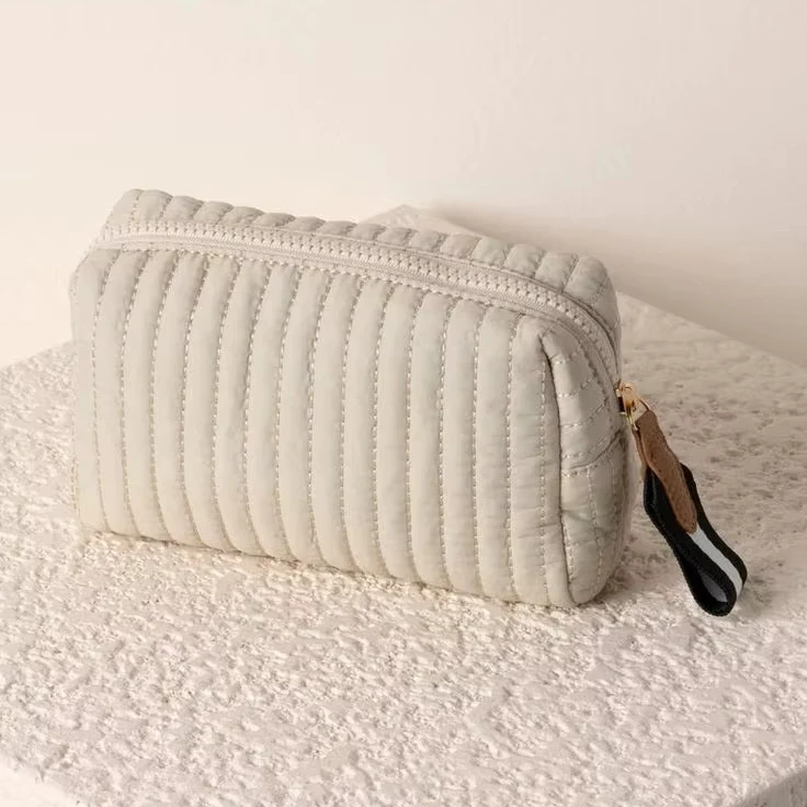 Kvinnelig quiltet bomullskosmetikkpose med glidelås, egendefinert logo, myk reise-toilett- og sminkesett for oppbevaring |