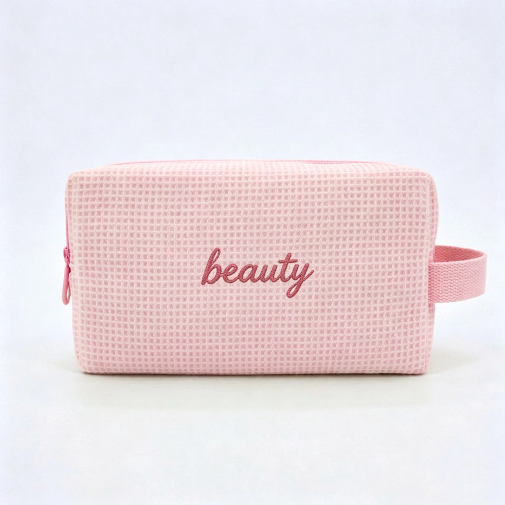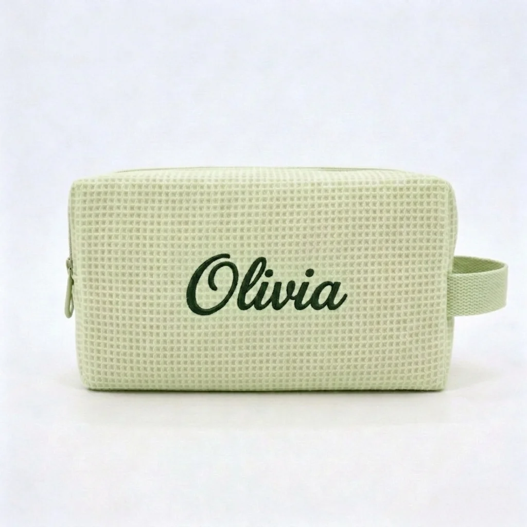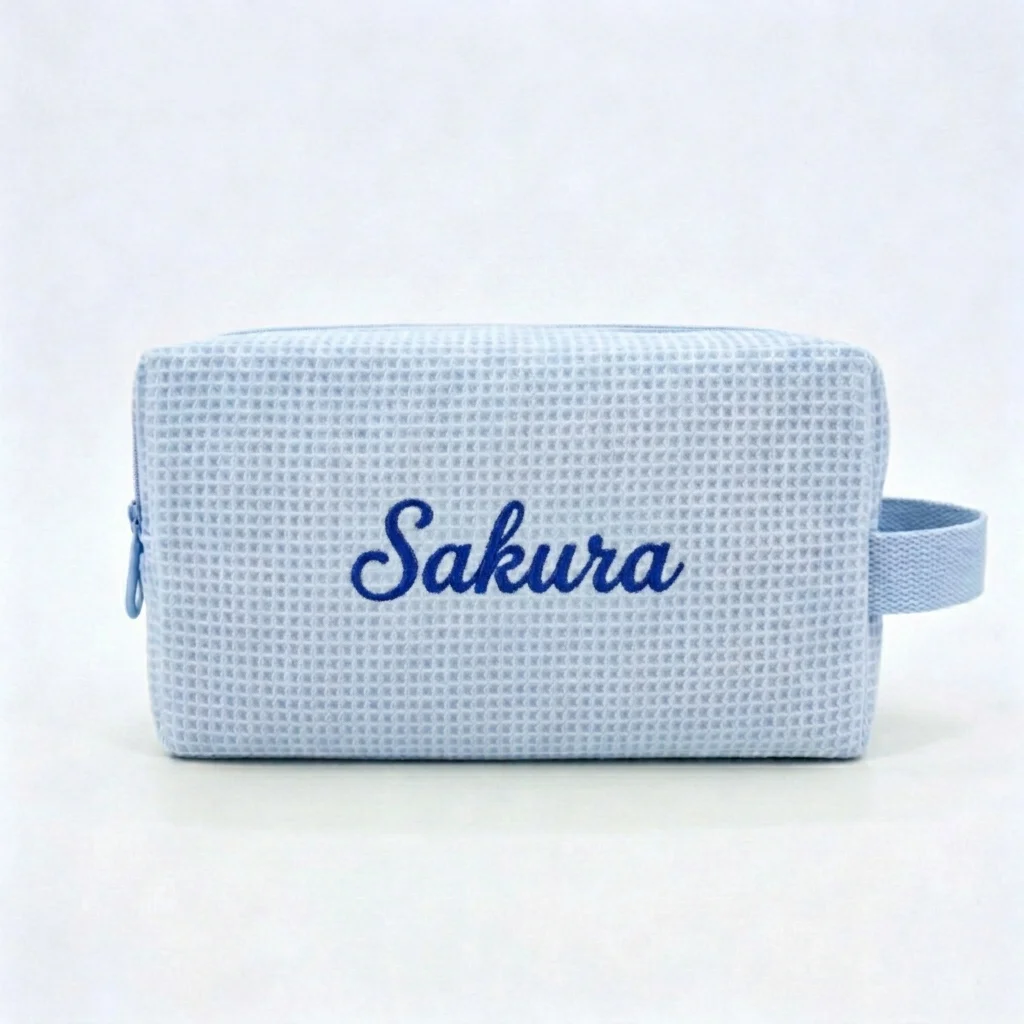 Custom Embroidered Design: Personalize your makeup bag with your initials.
